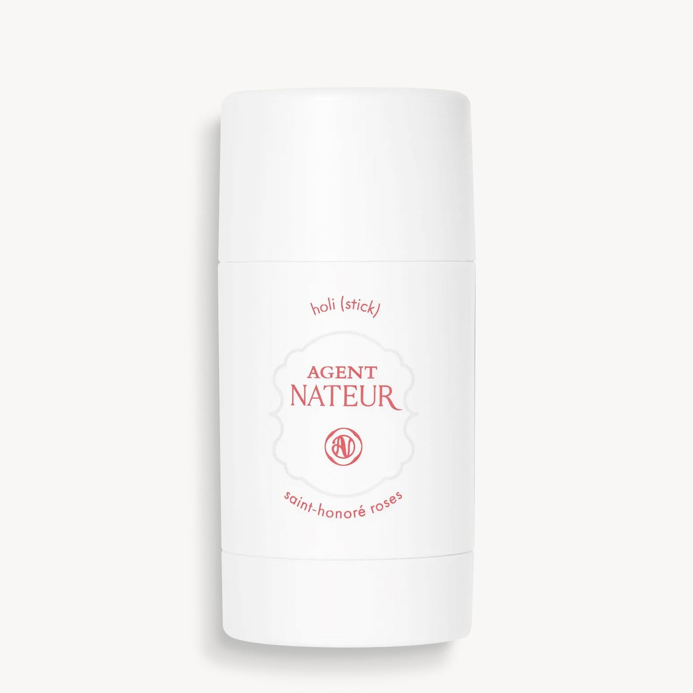 Holi (stick) saint honoré roses est une lettre d'amour de Jena, la créatrice de Agent Nateur, à Paris. "Le souvenir d'avoir cueilli des roses en flânant rue Saint-Honoré, avant de rentrer dans ma chambre pour faire ma composition. L'air, chargé du parfum des pétales et du mélange séduisant des parfumeries qui bordaient la rue, était enivrant. Ce parfum capture ce souvenir : profond, musqué et boisé, où l'élégance de la rose rencontre la chaleur de la vanille et du patchouli."