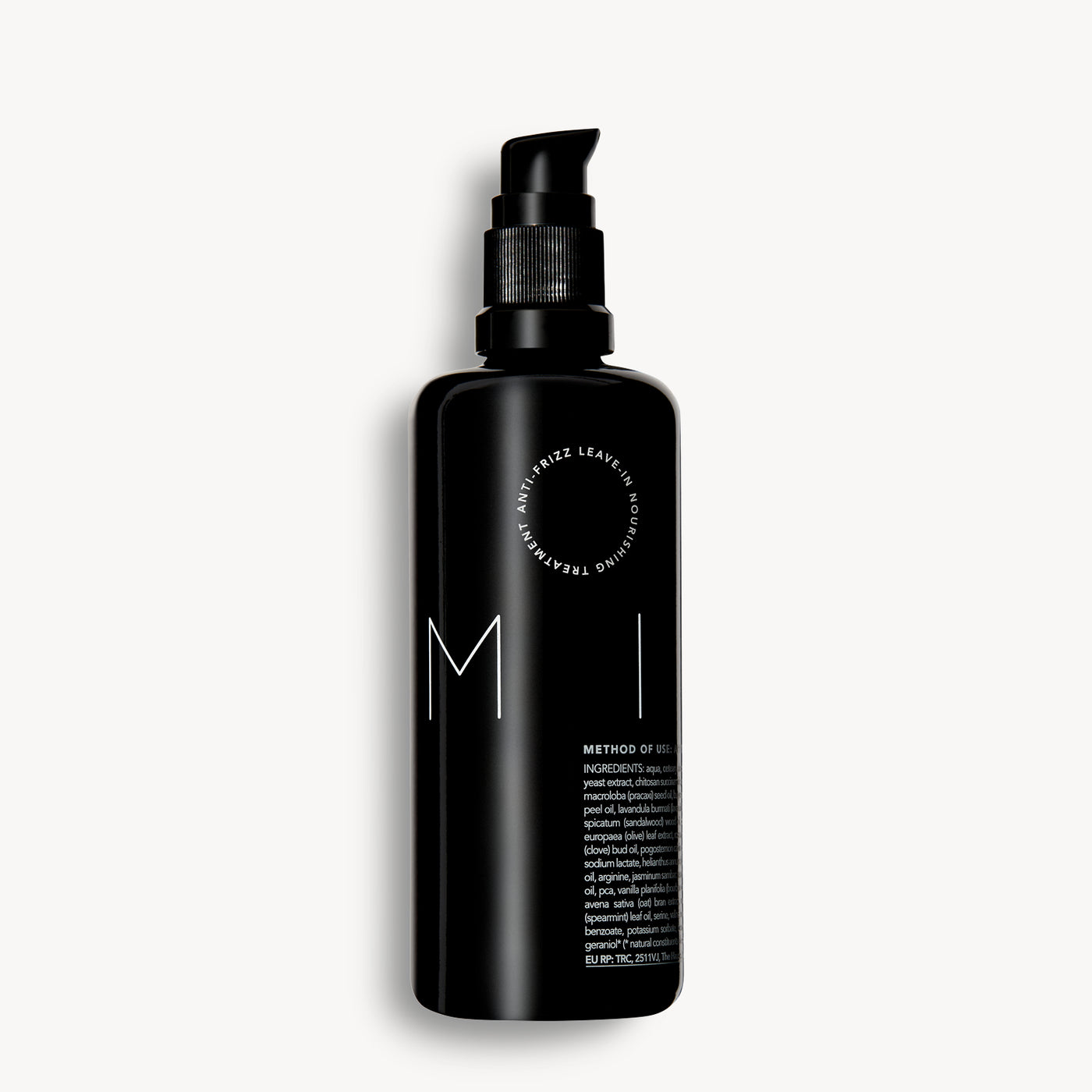 Water, Behentrimonium Methosulfate, Cetearyl Alcohol, Dicaprylyl Carbonate, Pentaclethra Macroloba (Pracaxi) Seed Oil, Hydrolyzed Sweet Almond Protein, Butyrospermum Parkii (Shea) Nut Butter, Cetyl Esters, Olea Europaea (Olive) Leaf Extract, Laurus Nobilis (Bay Laurel) Leaf Oil, Vanilla Planifolia (Bourbon Vanilla) Bean Oil, Eugenia Caryophyllus (Clove) Bud Oil, Zingiber Officinale (Ginger) Root Oil,Citrus Bergamia (Bergamot) Peel Oil, Pogostemon Cablin (Patchouli) Leaf Oil, Piper Nigrum (Black Pepper) Fruit Oil, Santalum Spicatum (Sandalwood) Wood Oil, Rosa Damascena (Rose) Flower Oil, Vetiveria Zizanioides (Vetivert) Root Oil, Salvia Officinalis (Sage) Leaf Oil, Lavandula Burmati (Lavandin) Flower/Leaf Oil, Foeniculum Vulgare Var. Dulce (Fennel) Seed Oil, Jasminum Sambac (Jasmine) Flower Oil, Mentha Spicata (Spearmint) Leaf Oil, Rosmarinus Officinalis (Rosemary) Leaf Extract, Helianthus Annuus (Sunflower) Seed Oil, Sodium Pca, Sodium Lactate, Arginine, Aspartic Acid, Pca, Glycine, Alanine, Serine, Valine, Proline, Theronine, Isoleucine, Histidine, Phenylalanine, Chitosan Succinamide, Yeast Extract, Dehydroacetic Acid, Benzyl Alcohol.