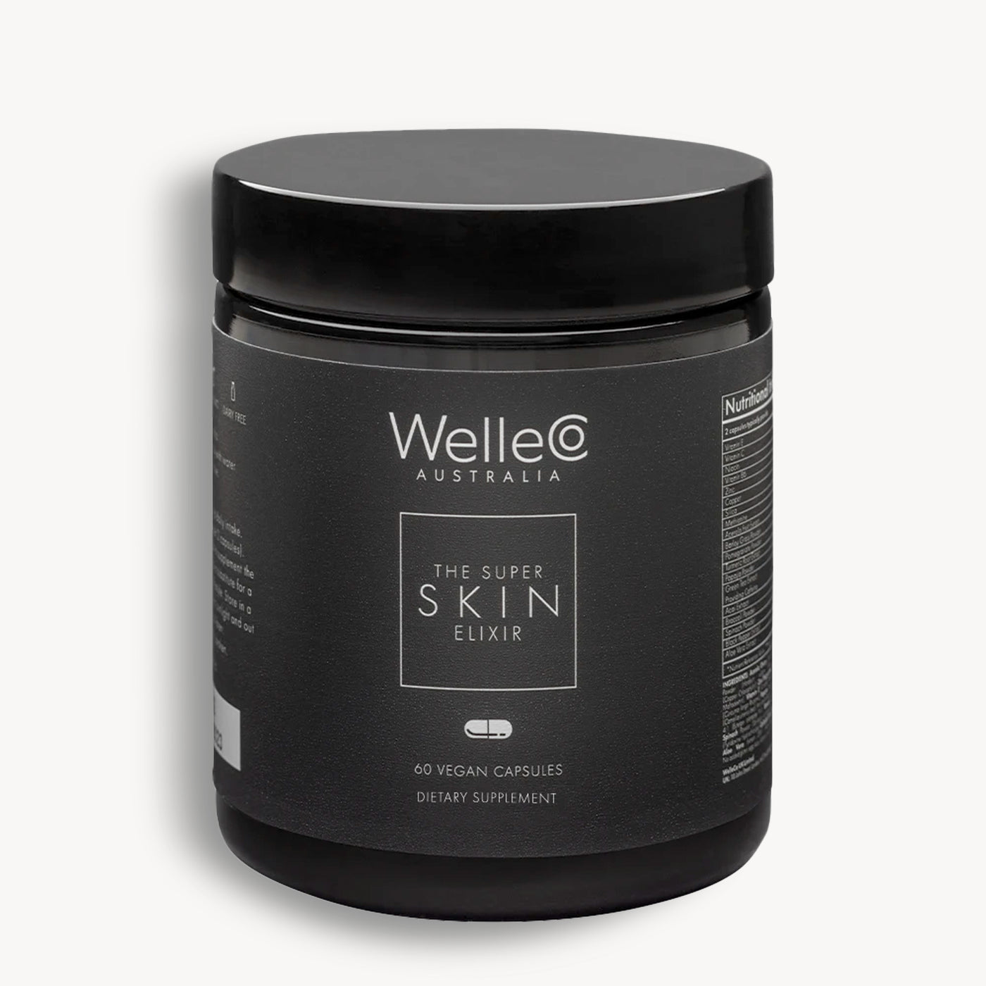 Destiné à la santé et à l'éclat de la peau, chaque capsule de Skin Elixir de WelleCO contient un puissant mélange de 18 plantes et d'ingrédients favorisant la production de collagène et la fermeté et l'élasticité de la peau, tels que de la Niacinamide et la Vitamine E.